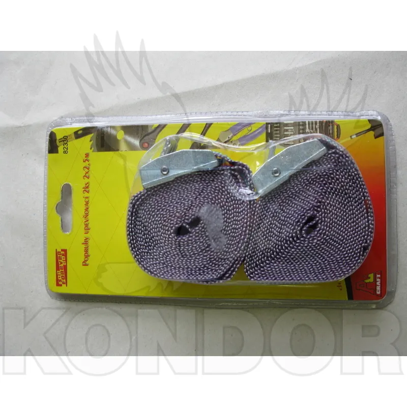 Balení 2 ks stahovacích popruhů pro zajištění věcí při přepravě. Délka 2,5 m.