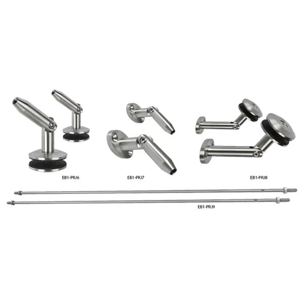 Sada komponentů pro přístřešek s výplní skla o síle 8 – 12 mm. Sada obsahuje 2 držáky skla s upevněním na zeď, 2 držáky táhla na zeď, 2 držáky skla pro táhlo a 2 táhla. Materiálové provedení nerez AISI304. Sada neobsahuje spojovací materiály do zdi a skleněnou stříšku. Doporučený rozměr skla je maximálně 1000 × 1500 mm. Celková délka táhla je 930mm.