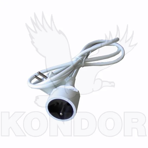 Běžný prodlužovací kabel s délkou 3 m pro pracovní napětí 230 V. Trojice vodičů s průřezem 1 mm^2. Bílá barva.
