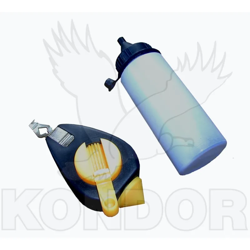 Sada zednického provázku, nebo-li brnkačky, s barvou.