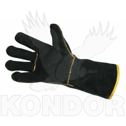 Zateplené svářečské celokožené rukavice z hovězí štípenky v délce 35 cm. Bavlněná podšívka s krytými švy. Typ A velikost 11 černé barvy.