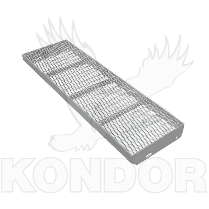 Schodišťový stupeň z tahokovu se zinkovou povrchovou úpravou