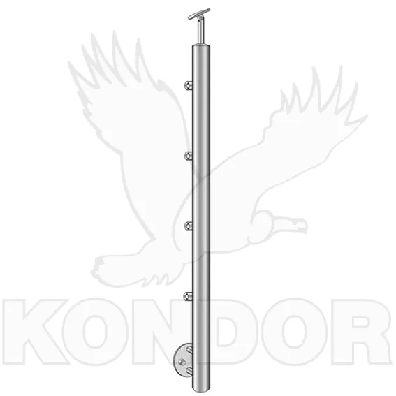 Nerezový sloupek o průměru 42,4 mm určený k bočnímu kotvení. Horizontální výplň 4 x d12 mm. Nerezový sloupek je určen pro rovné zábradlí výšky 90 cm a montáž s maximálním přepadem do 3 m. Možnost nastavení sklonu výplně a madla (madlo o průměru 42,4 mm). Materiál AISI 304 v povrchové úpravě brus K320.