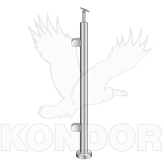 Nerezový sloupek o průměru 42,4 mm určený k vrchnímu kotvení. Horizontální výplň sklo. Umístění držáků – levé. Včetně těsnění pro sklo síly 8,76 mm. Nerezový sloupek je určen pro rovné zábradlí výšky 90 cm a montáž s maximálním přepadem do 3 m. Možnost nastavení sklonu madla (madlo o průměru 42,4 mm). Materiál AISI 304 v povrchové úpravě brus K320.