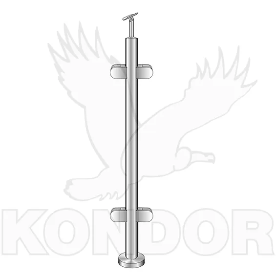 Nerezový sloupek o průměru 42,4 mm určený k vrchnímu kotvení. Horizontální výplň sklo. Umístění držáků – pravé i levé. Včetně těsnění pro sklo síly 8,76 mm. Nerezový sloupek je určen pro rovné zábradlí výšky 90 cm a montáž s maximálním přepadem do 3 m. Možnost nastavení sklonu madla (madlo o průměru 42,4 mm). Materiál AISI 304 v povrchové úpravě brus K320.