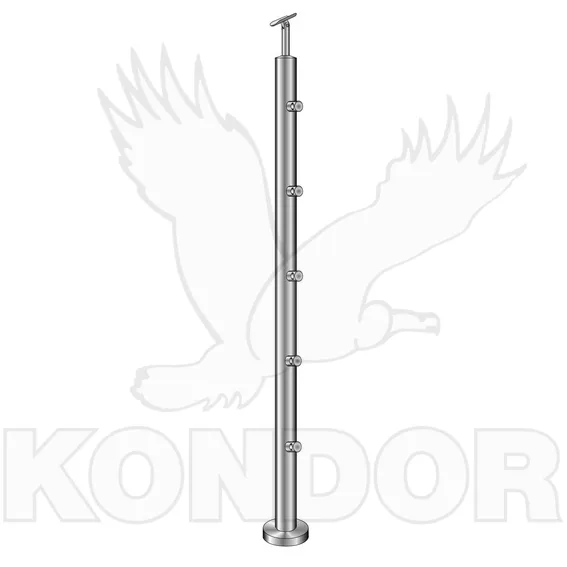 Nerezový sloupek o průměru 42,4 mm k vrchnímu kotvení. Horizontální výplň - trubička či drát. Nerezový sloupek je určen pro rovné zábradlí výšky 100 cm a montáž s maximálním přepadem do 12 m. Nastavitelný sklon výplně a madla. Materiál AISI 304 v povrchové úpravě brus K320.