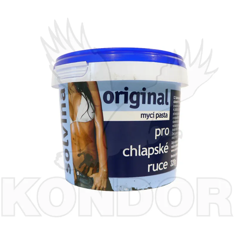 Solvina mycí pasta na ruce obsahující látky, které příznivě působí na pokožku rukou a činí ji hebkou a svěží. Lehce a snadno odstraňuje nečistoty z pokožky. Obsah 320 g.