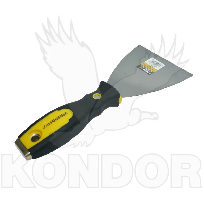 Nerezová špachtle s pohodlnou gumovou rukojetí, která dobře padne do ruky. Šíře 100 mm. Určená pro řemeslné činnosti nebo domácí práce.