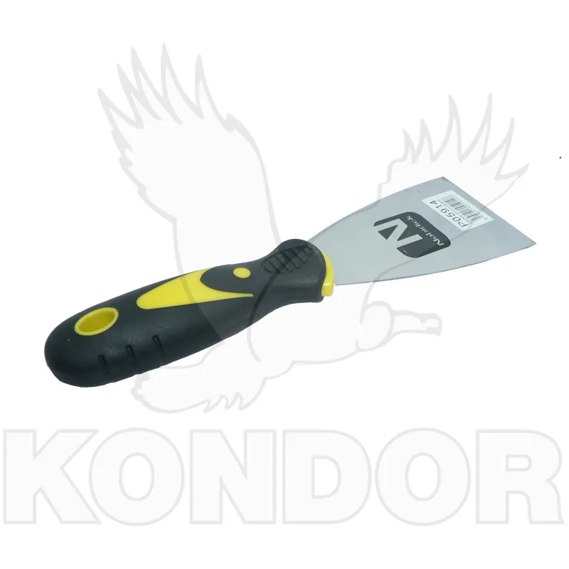 Nerezová špachtle s pohodlnou gumovou rukojetí, která dobře padne do ruky. Šíře 60 mm. Určená pro řemeslné činnosti nebo domácí práce.