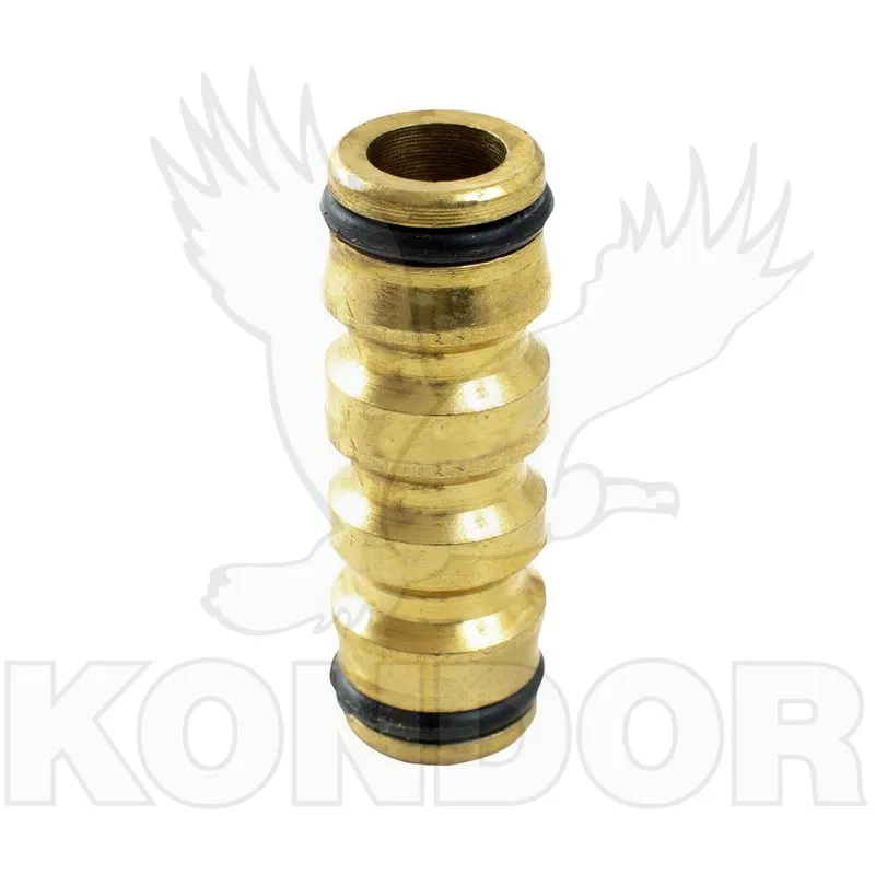 Mosazna hadicová spojka. Určena ke spojení dvou hadic zakončených rychlospojkami.