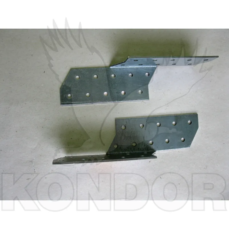Plechová spojka na trámy s otvory pro vruty PRAVÁ. Rozměry 30 x 115 x 170 mm. Síla 2 mm.