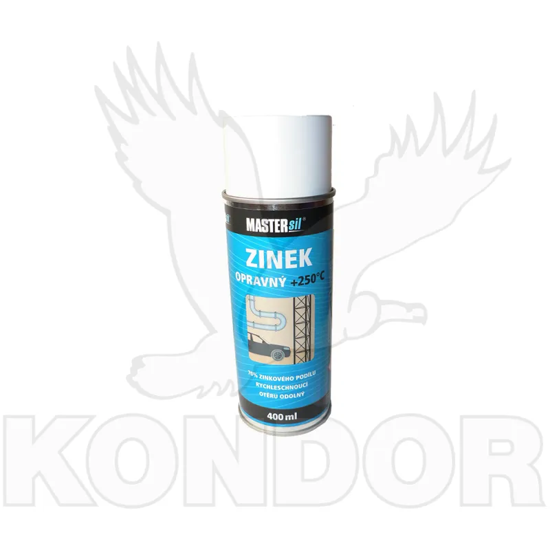 Opravný rychleschnoucí, otěruvzdorný zinek ve spreji. Odolá teplotám do 250 °C.