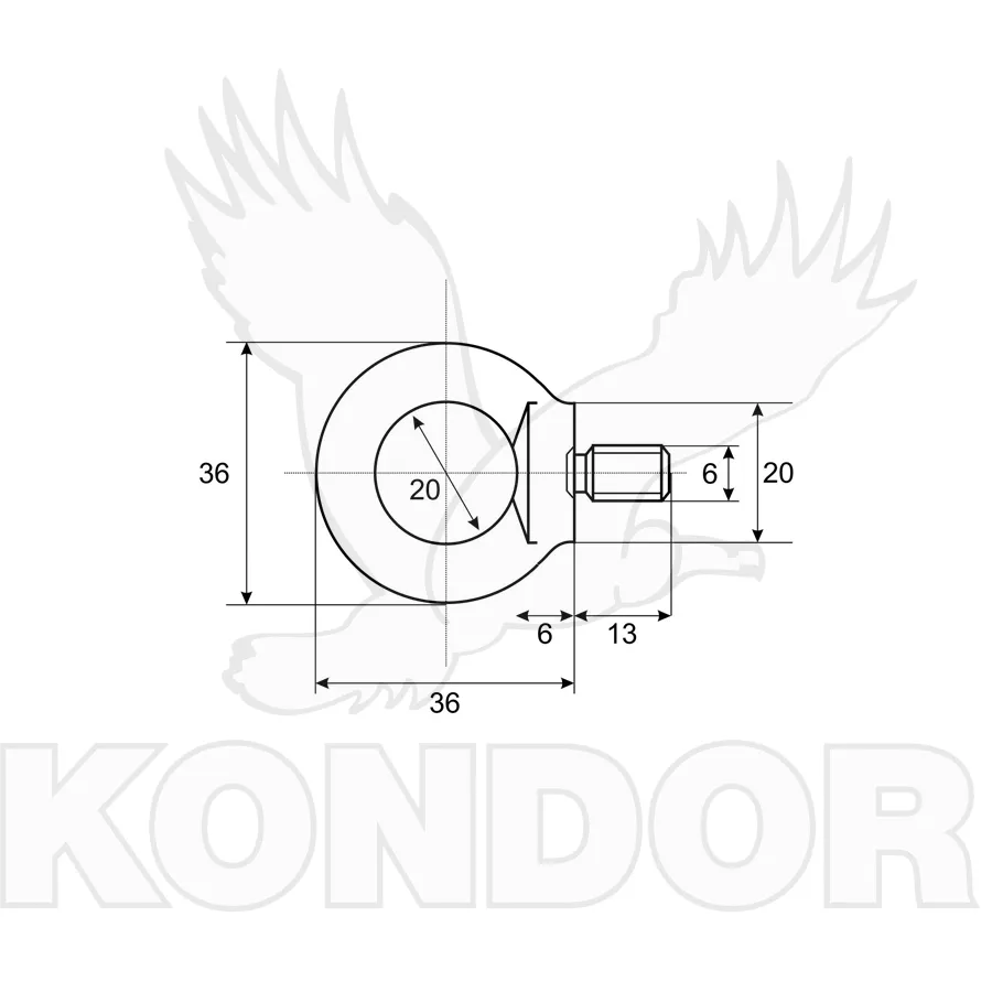 Šroub s okem určený k zavěšení. Materiál pozinkovaný. Rozměry M 6 × 13 mm.