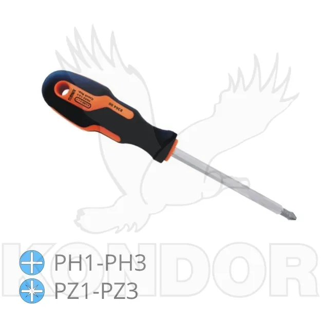 Univerzální křížový šroubovák PH1, PH2, PH3, PZ1, PZ2, PZ3 délka dříku 100 mm, rukojeť 100x34 mm.