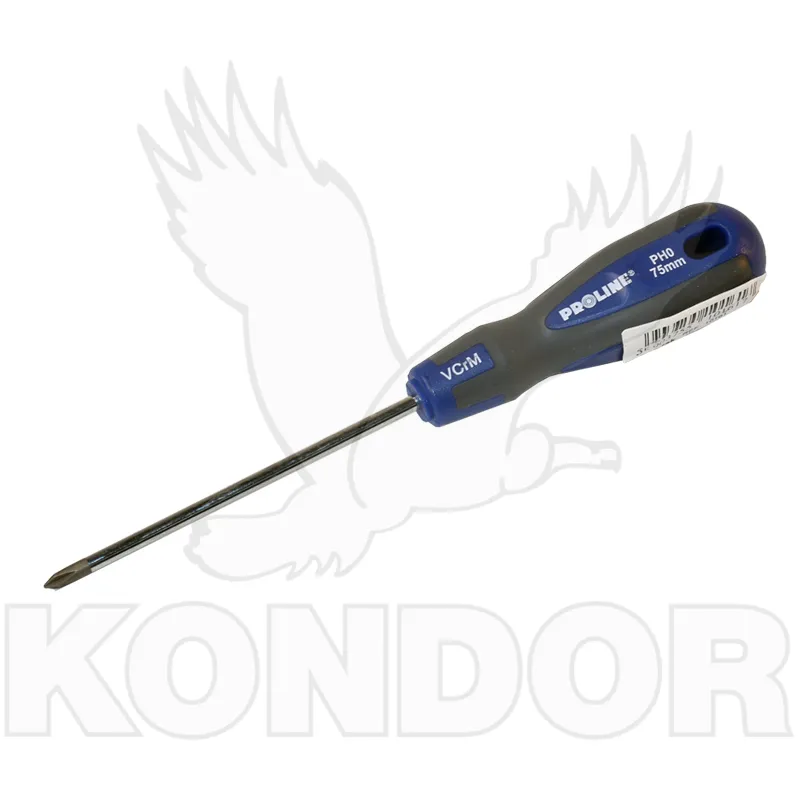 Univerzální šroubovák s ergonomickou rukojetí z neklouzavého materiálu, s hrotem PH 0 a pracovní délkou 75 mm.