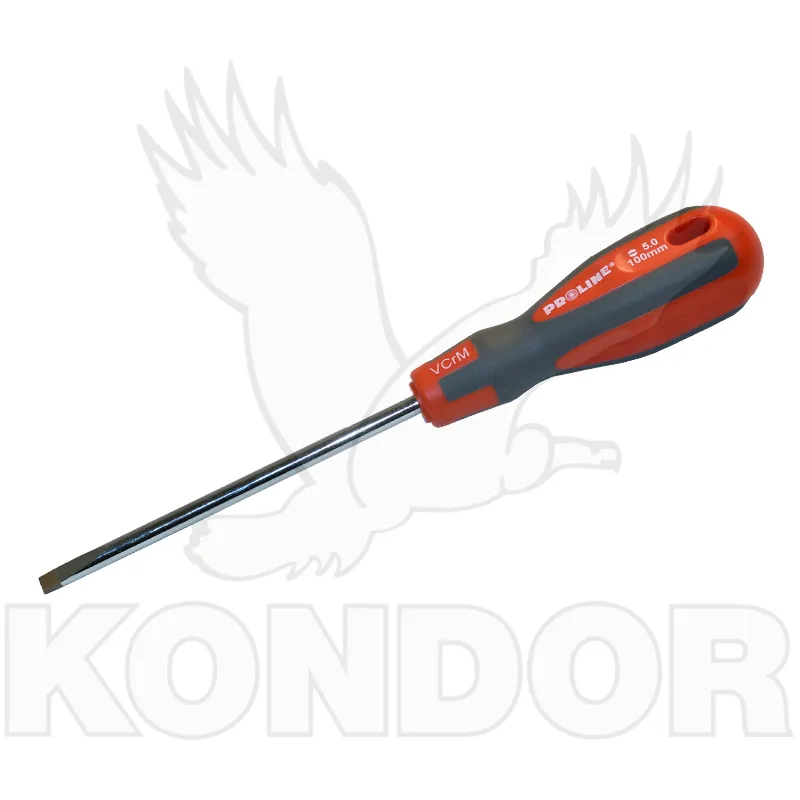 Univerzální šroubovák s ergonomickou rukojetí z neklouzavého materiálu, s plochým hrotem 5,0 mm a pracovní délkou 100 mm.