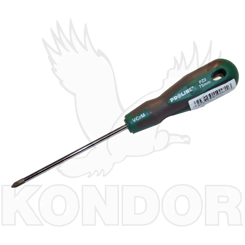 Univerzální šroubovák s ergonomickou rukojetí z neklouzavého materiálu, s hrotem PZ 0 a pracovní délkou 75 mm.