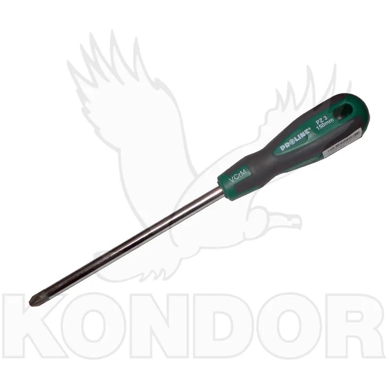 Univerzální šroubovák s ergonomickou rukojetí z neklouzavého materiálu, s hrotem PZ 3 a pracovní délkou 150 mm.