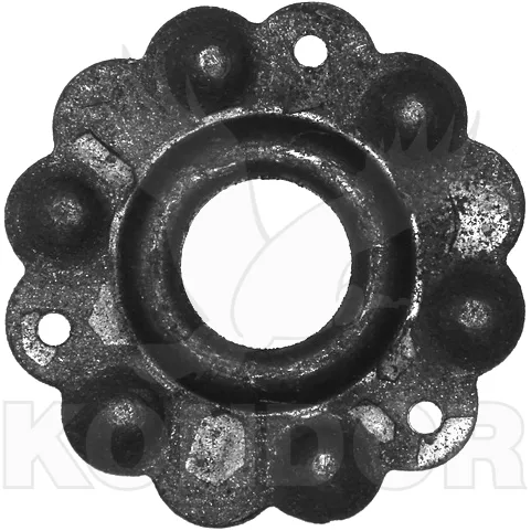 Ozdobný štítek ke klice o průměru 65 mm a síle plechu 2 mm. Bez povrchové úpravy.