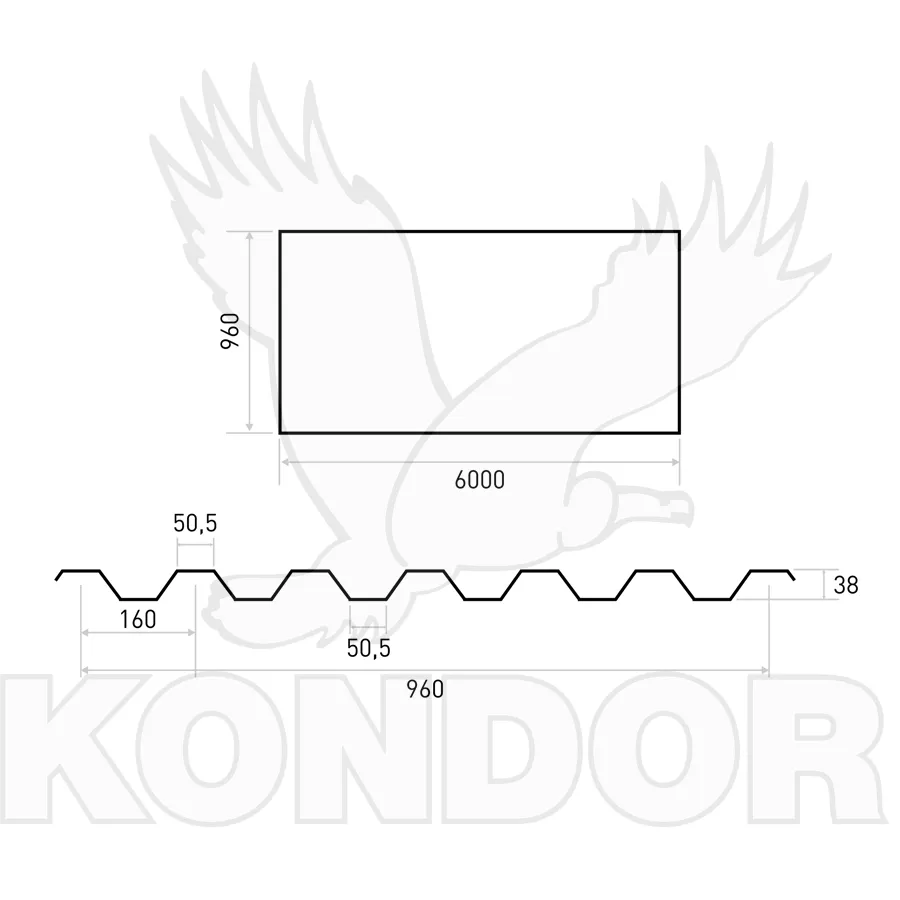 Trapézový plech s povrchovou úpravou ZMevolution! Žárové zinkování je prováděno v roztavené lázni unikátního poměru hořčíku, hliníku a zinku. Vytváří velmi odolnou vrstvu proti korozi. Trojnásobně prodlužuje životnost zinku. Skladebná šíře 0,96m. Bez prolisu.
