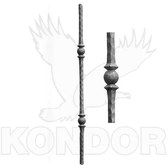 Rovná ozdobná tyč ze čtvercové oceli se dvěma elementy uprostřed. Průřez tyče 12 × 12 mm, výška 1000 mm. Vhodná do výplně zábradlí, plotu. Standardně dodáváme v surovém provedení. Průměr kuličky je 35 mm.