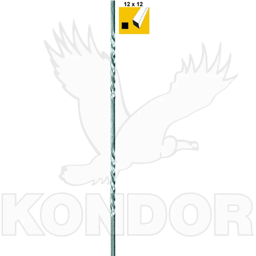 Tyč ozdobná, kovaná a rovnáze čtvercové oceli o rozměru 12 x 12 mm. Výška 900 mm. Dvakrát torzírovaná vždy v délce 150 mm. Vhodná do výplně zábradlí, plotů, brány, branky. Možnost střídavě kombinovat s produktem číslo 700754. Standardně se prodává v surovém provedení.