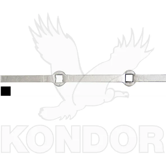 Kovaná tyč s průvlaky je vyrobená ze čtvercové oceli o rozměru 12 x 12 mm. Prodává se v celé výrobní délce 2 m a není možné ji dělit. Rozteč mezi průvlaky 120 mm, počet průvlaků 16 kusů. Standardně se prodává v surovém provedení.