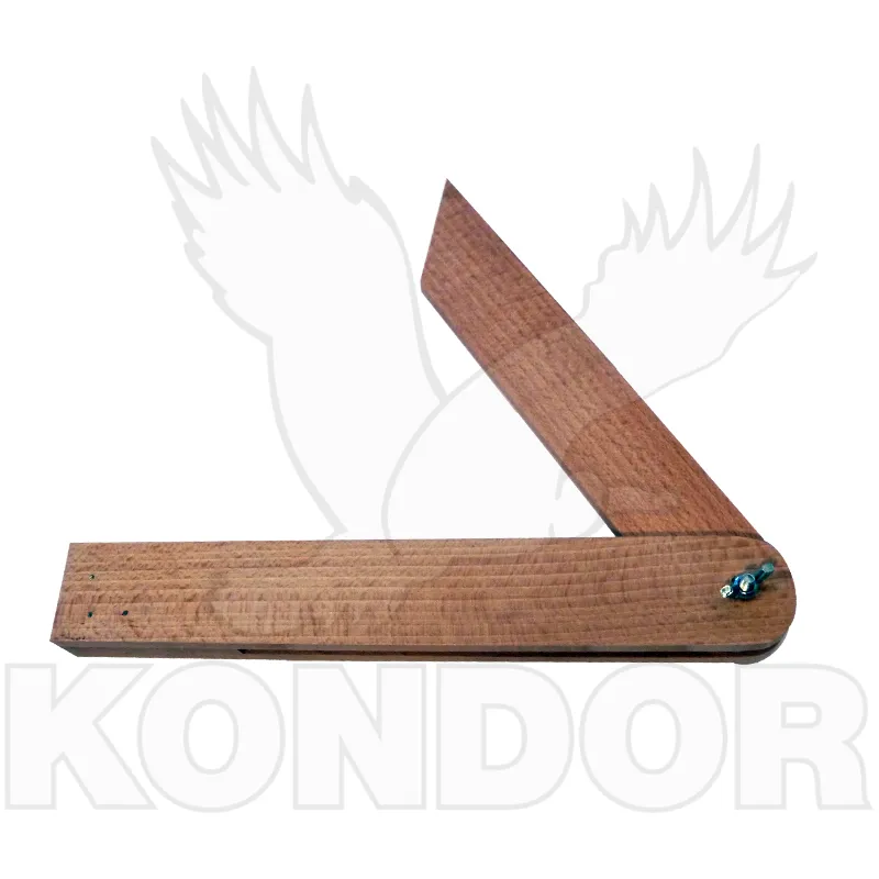 Dřevěný rozevíratelný úhelník. Používá se pro nastavení úhlu a přenosu jinam. Neobsahuje stupnici. Delší rameno 400 mm.