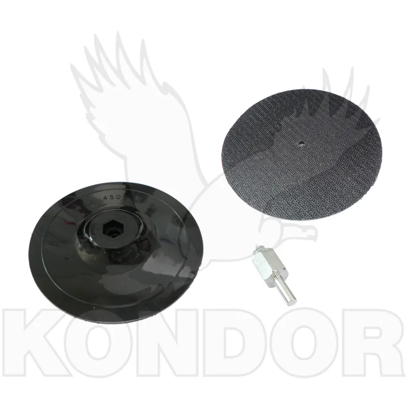 Silnější gumový kotouč je určen pro upnutí do úhlové brusky. Brusný kotouč se připevňuje pomocí suchého zipu. Průměr 125 mm. Součástí balení je stopka pro uchycení do vrtačky.