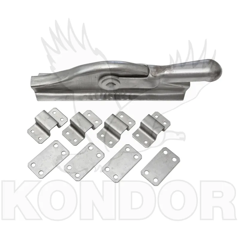 Uzávěr určený pro vrata a dveře se zajištěním nahoru i dolů. Materiál surový.