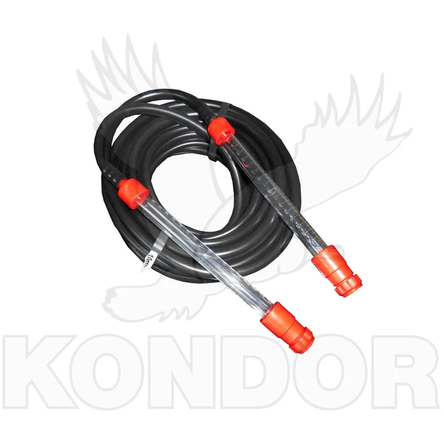 Komplet hadicové vodováhy složený z hadice vyrobené z měkčeného PVC a dvou plastových baněk. Hadice je velice měkká a ohebná. Délka hadice je 15 m.