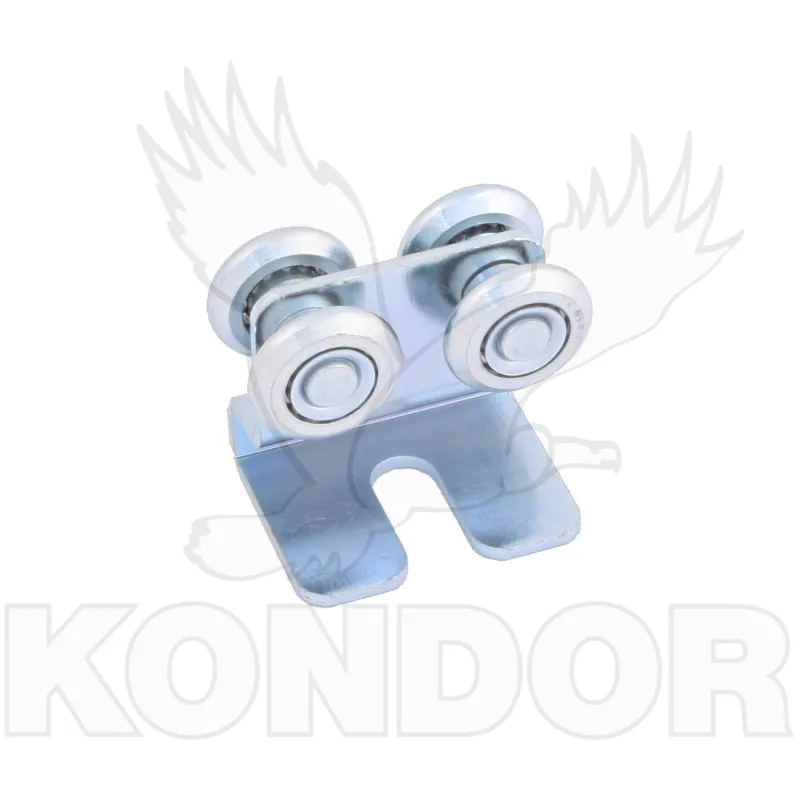 Čtyřkolečkový závěsný vozík s ložiskem pro posuvné závěsné brány. Žárově pozinkovaný.