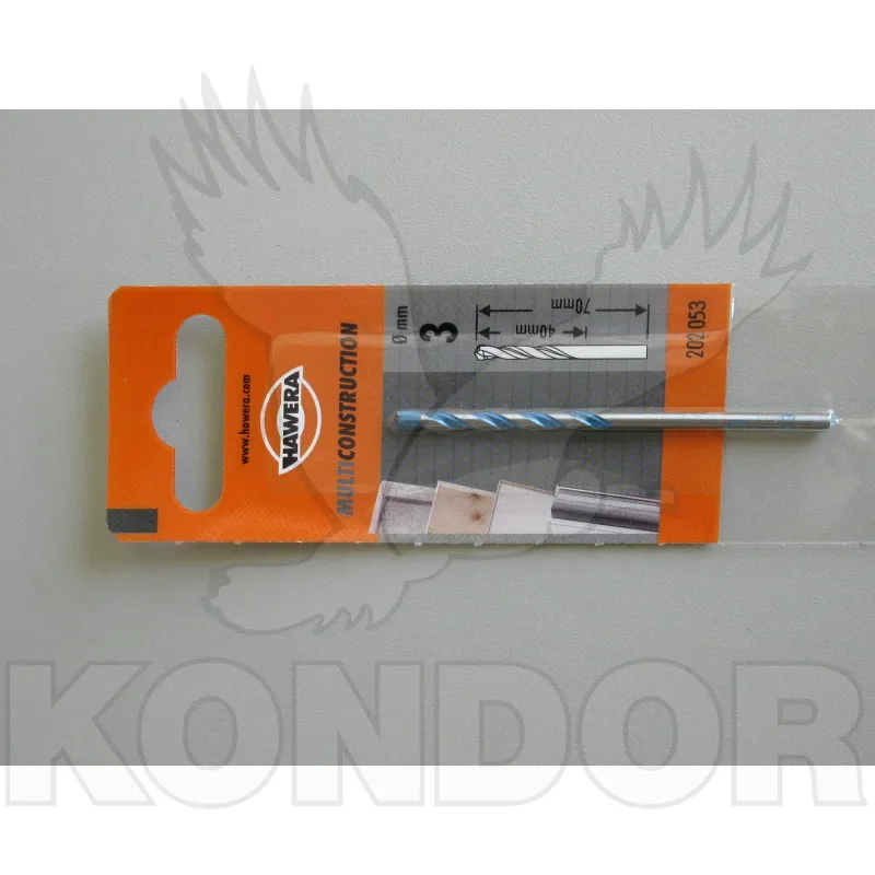 Vhodný pro všechny materiály používané při vnitřní výstavbě, jako jsou např. beton, zdivo, cihly, eternit, lehké stavební materiály aj. Průměr 3 mm.