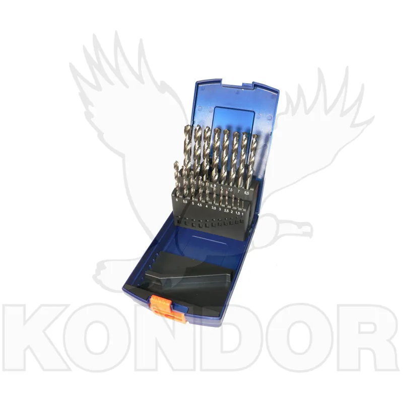 Sada 19ti kusů ocelových vrtáků dle DIN 338 o rozměrech 1 - 10 mm.