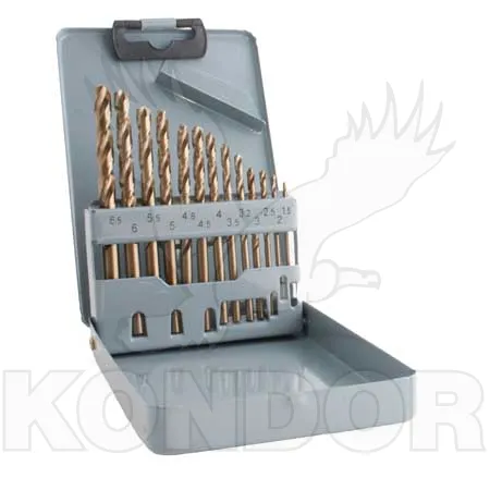 Vrtáky HSS tvářené (válcované) pro vrtání v součástkách z nelegované i legované oceli, temperované i tvárné litiny, spékané oceli, hliníkové slitiny aj. Vrtáky jsou v sadě 13ks uložené v plechovém boxu.