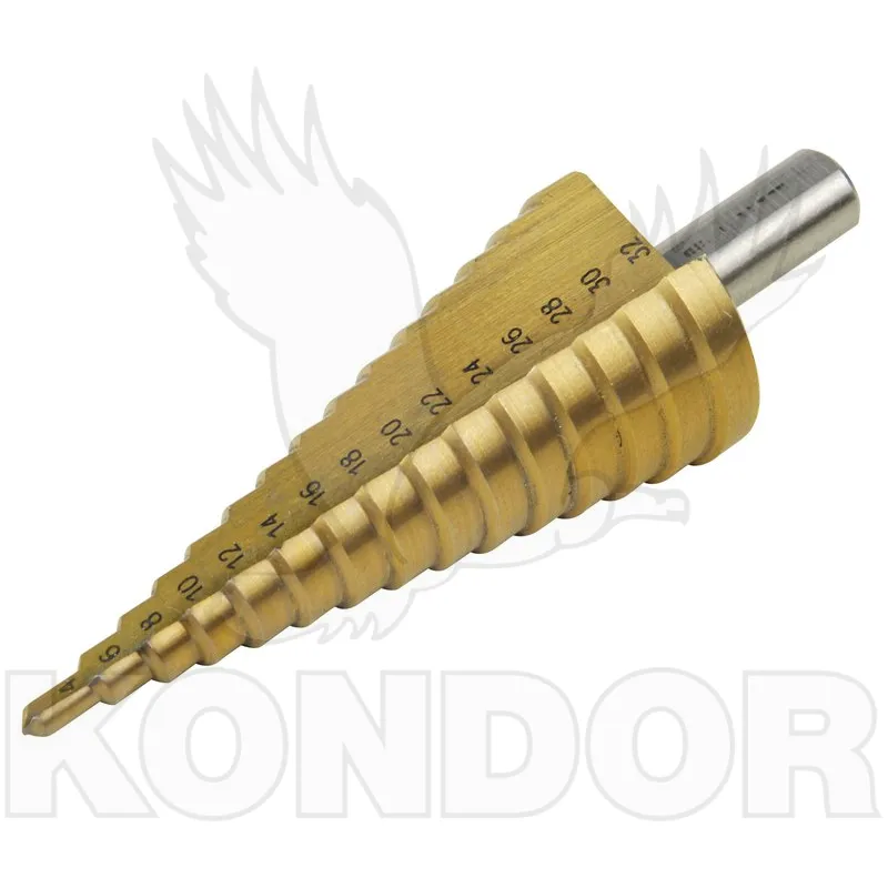 Stupňovitý vrták vhodný k použití do měkčích materiálů např. měkkých kovů, dřeva, plastů a plexiskla. Kuželový vrták je určen pro plynulé a bezhrotové vrtání a navrtávání otvorů bez deromace plechu. Vrtáky je možné znovu naostřit.