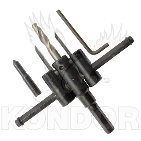 Nastavitelný vykružovací vrták se dvěma břity do dřeva pro průměry od 3 do 12 cm.