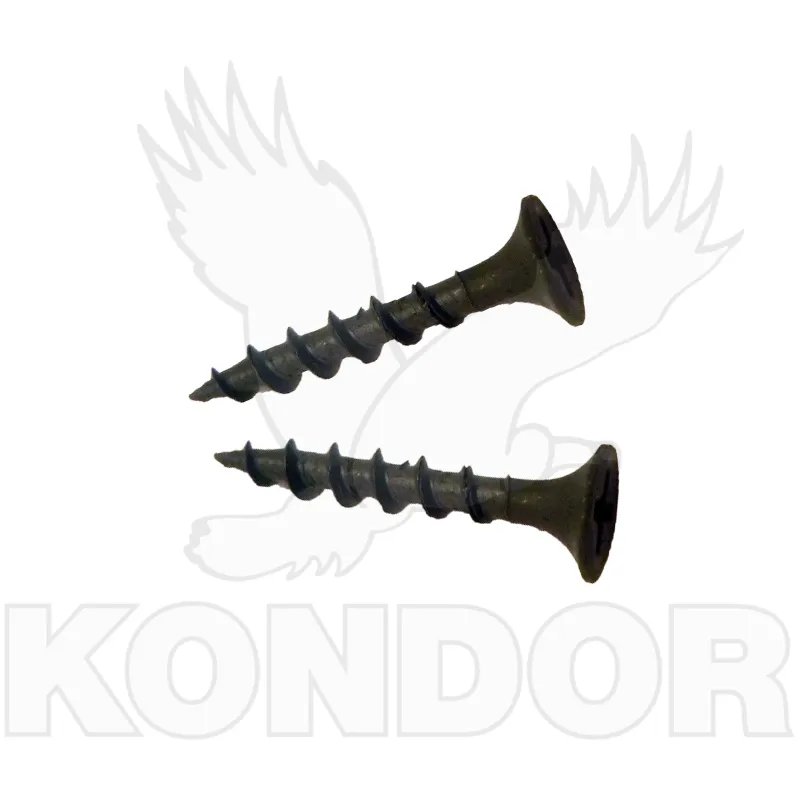 Černěný vrut o síle 3,5 mm a délce 25 mm se zápustnou hlavou a hrubým závitem, který se používá pro přichycení sádrokartonu do kovových profilů. Vhodné pro nástavec PH2.
