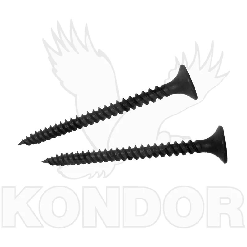 Černěný vrut o síle 3,5 mm a délce 45 mm se zápustnou hlavou a jemným závitem, který se používá pro přichycení sádrokartonu do kovových profilů. Vhodné pro nástavec PH2.