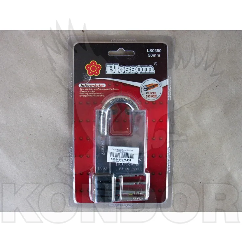 Kvalitnější bezpečností zámek se železným tělem. Šířka 50 mm. 4 náhradní klíče.