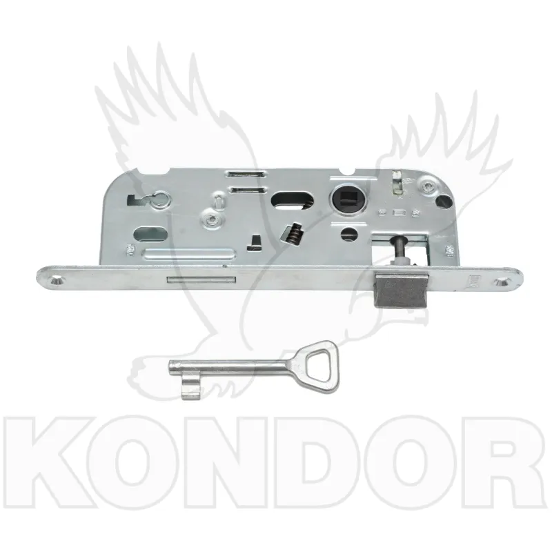 Zámek určený pro zadlabání do dveří. Oboustranné použití. Rozměry 90 x 60 x 40 mm. Určen pro odemykání obyčejným klíčem.