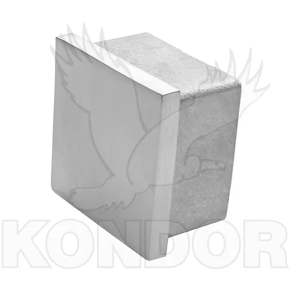Nerezová zatloukací záslepka na ukončení madla. Rozměry 40 x 40 x 2 mm. Materiál AISI 304 v povrchové úpravě brus K320.