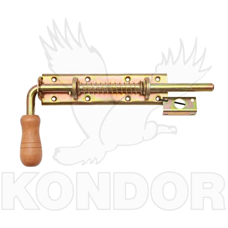 Zástrč v masivním provedení pro vrata a dveře s dřevěnou rukojetí.