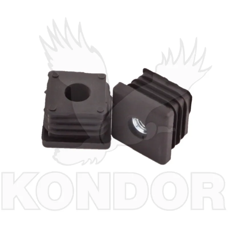 Plastová koncovka jeklu s kovovým závitem pro přišroubování rektifikačního šroubu M 8. Rozměry 30 x 30 mm. Možno nasadit na jekl o síle stěny 1–2 mm. Standardní barva je černá.