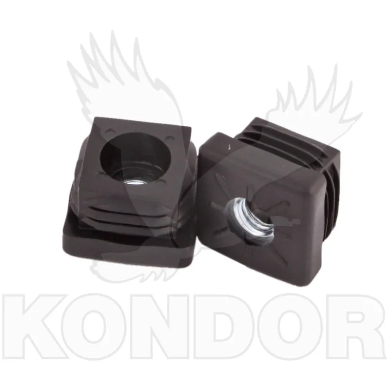Plastová koncovka jeklu s kovovým závitem pro přišroubování rektifikačního šroubu M 10. Rozměry 30 x 30 mm. Možno nasadit na jekl o síle stěny 1–2 mm. Standardní barva je černá.