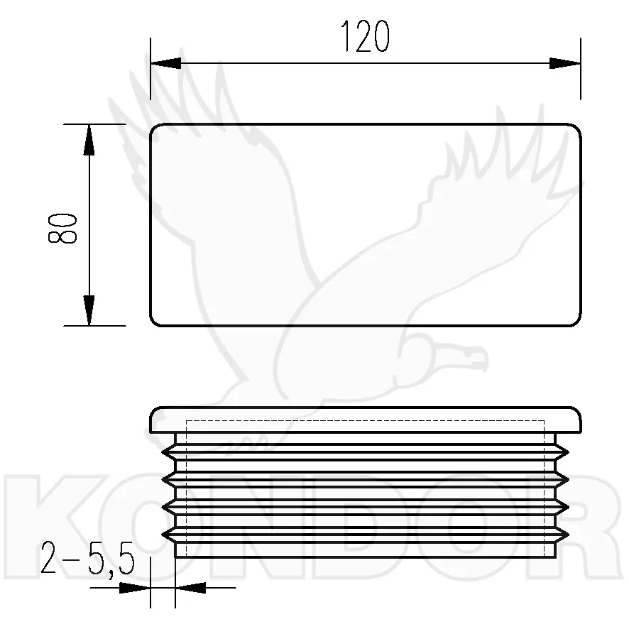 Plastová koncovka jeklu. Rozměry 120 x 80 mm. Možno nasadit na jekl o síle stěny 2–5,5 mm. Standardní barva je černá.