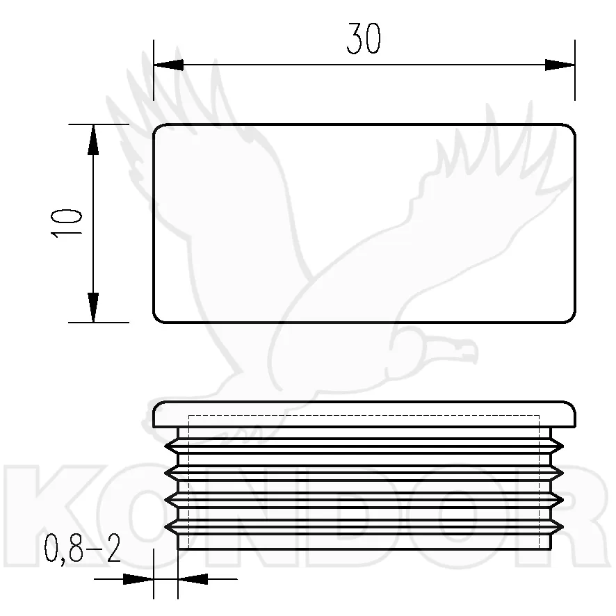 Plastová koncovka jeklu. Rozměry 30 x 10 mm. Možno nasadit na jekl o síle stěny 0,8–2 mm. Standardní barva je černá.