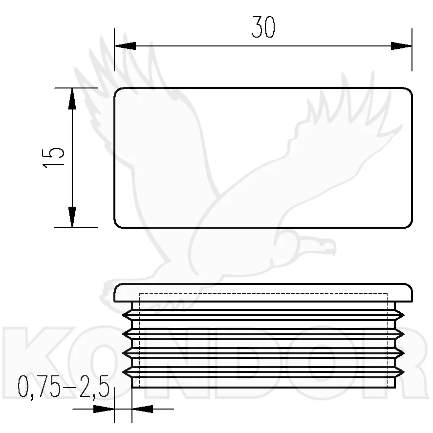 Plastová koncovka jeklu. Rozměry 30 x 15 mm. Možno nasadit na jekl o síle stěny 0,75–2 mm. Standardní barva je černá.