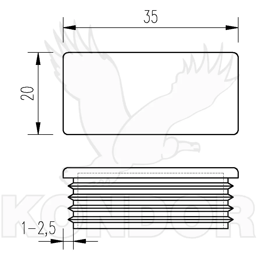 Plastová koncovka jeklu. Rozměry 35 x 20 mm. Možno nasadit na jekl o síle stěny 1–2,5 mm. Standardní barva je černá.