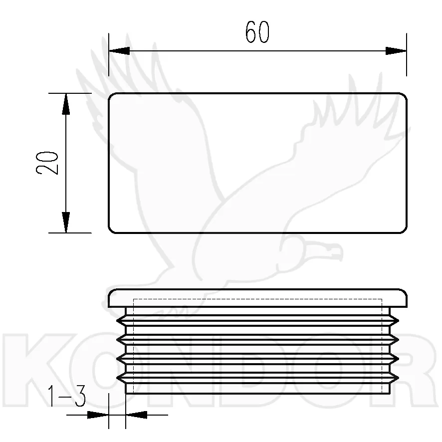 Plastová koncovka jeklu. Rozměry 60 x 20 mm. Možno nasadit na jekl o síle stěny 1–3 mm. Standardní barva je černá.